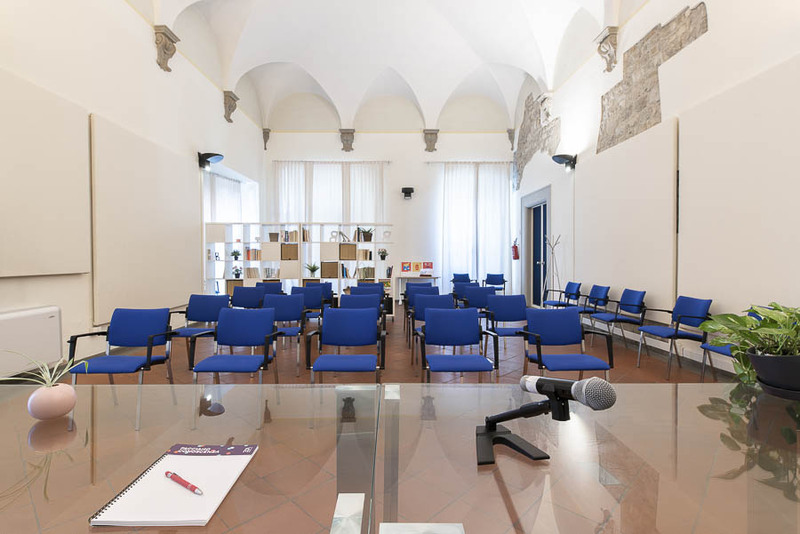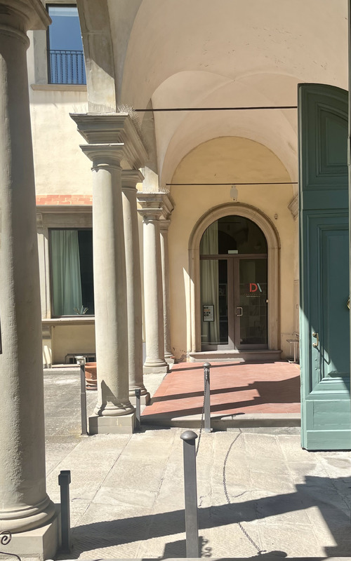 La nostra sede si trova nel cortile principale che si affaccia su via delle Panche, nella sala al piano terreno con le tracce in muratura della torre trecentesca confinante.